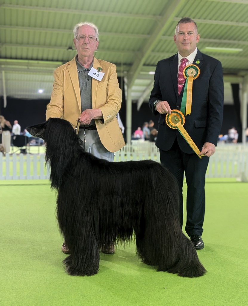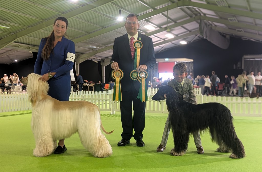| Junior Dog (2,0) 1st – DRISHAUN BABY’S IN BLACK JW 2nd – RHAJIKHAN WALKING ON WATER | Junior Bitch (4,2) 1st – AMESERWAH A KIND OF MAGIC WITH CASACHARED 2nd – RHAJIKHAN STAR OF THE NORTH |