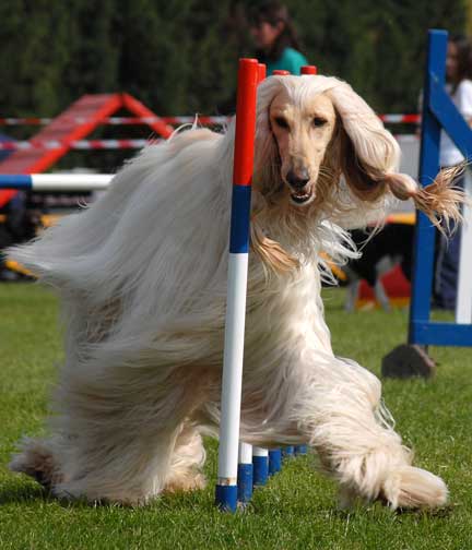 Despite popular belief, with the correct approach and dedication, Afghan Hounds are trainable in many disciplines, including agility.