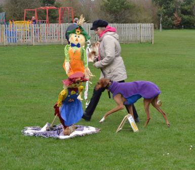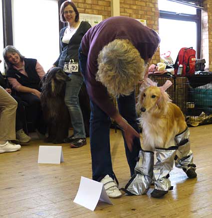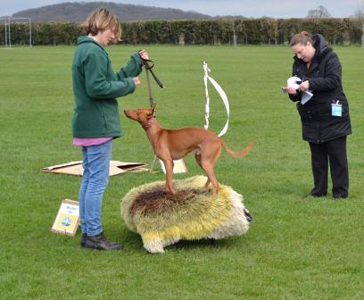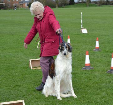 On Easter Saturday the Afghan Hound Association repeated at Newbury their popular Spotlight on Sighthounds event, this year featuring Borzois, Deerhounds, Greyhounds, Afghans, Salukis, Azawakhs, Pharoahs and Cirneco dell Etna. A full house enjoyed a morning of short talks, a splendid lunch and plenty of time for discussion. The afternoon on a windy field featured a very homemade Fit for Function Fun Rally course with such tests as the Snow Leopard test, the Mountain test and the Aloofness test. Unfortunately the Tunnel test did not survive the wind long and was blown flat. Most hounds present had a go and were joined by a few ‘pretend sighthounds’. It provided a lot of laughs but also plenty of chances to see the dogs move around the course. Eventual winner was an Afghan, runner-up a Border Collie and Effort Prize to a Cirneco. This event has been successful in allowing people to make connections between breeds and hopefully many new friends.