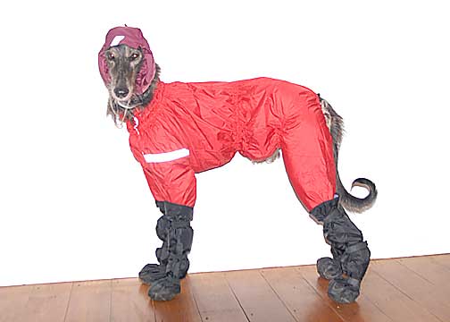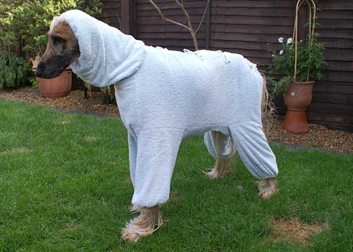 Towelling suits keep dogs warm after the bath and speed up drying time.