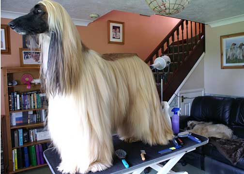 Afghan hounds require considerable amount of time dedicated to coat care. Dogs in full show coats are usually bathed and groomed weekly or fortnightly, those in pet clips will need less frequent baths but should still be brushed regularly.